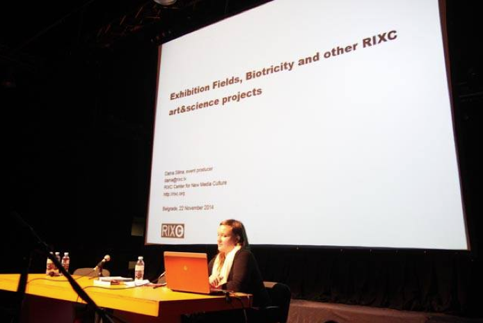 November 21-23, 2014, Daina Silina, event producer from RIXC, participated in SUTRA/TOMMOROW festival in Belgrade, Serbia, exhibiting “Pond Battery. Biotricity project” as a live stream internet and sound installation and giving a talk on art and science projects produced by RIXC.
